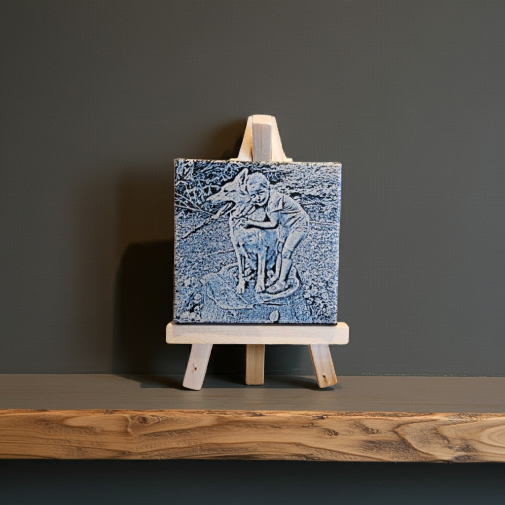 Optioneel geleverd met een standaard, zodat je het mini canvas gemakkelijk neerzet op een bureau, plank of vensterbank. Ideaal als klein cadeau, decoratie of aandenken aan een bijzondere gebeurtenis.